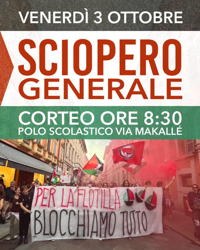 VENERDÌ 3 OTTOBRE🔥 SCIOPERO GENERALE: Ore 8:30—Polo Scolastico, via Makallé