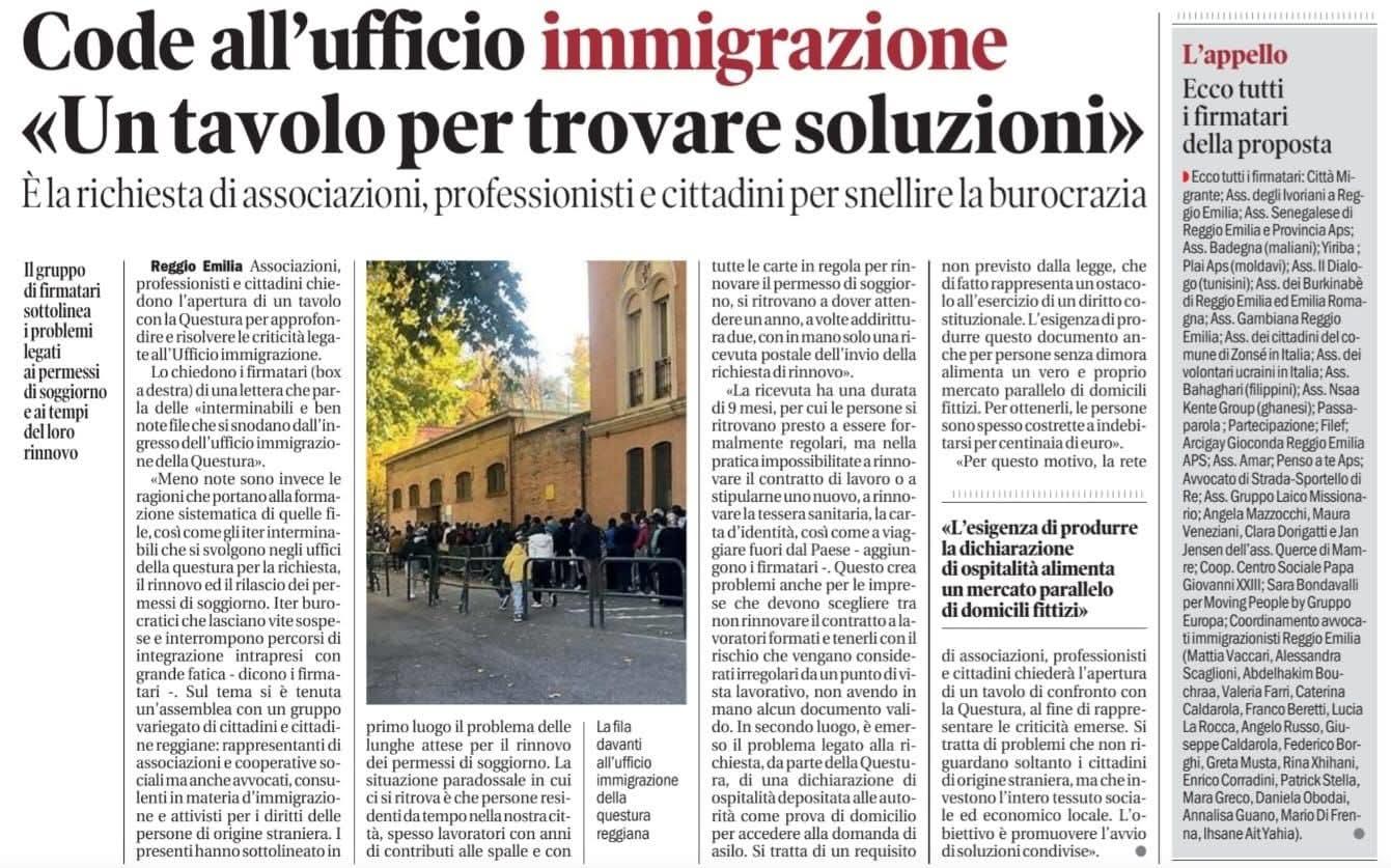 Le interminabili file che si snodano dall’ingresso dell’ufficio immigrazione della #Questura di Reggio Emilia lungo i parcheggi di viale Piave sono ben note. Meno note sono invece le ragioni che portano alla formazione sistematica di quelle file, così come gli iter interminabili che si svolgono all’interno degli uffici della questura per la richiesta, il rinnovo ed il rilascio dei permessi di soggiorno. Iter burocratici che lasciano vite sospese, e che interrompono percorsi di integrazione intrapresi con grande fatica.