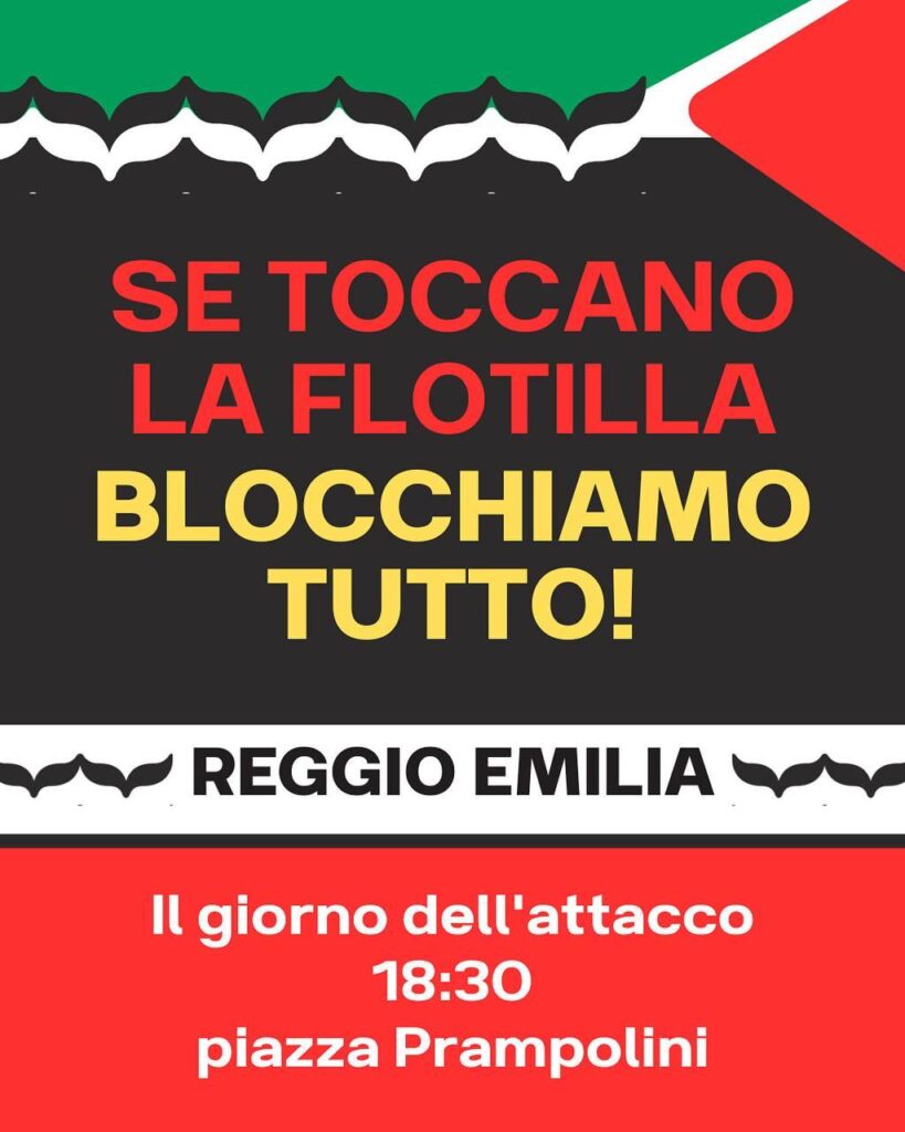 Dopo l’attacco alla #GlobalSumudFlotilla da parte delle forze israeliane ieri sera, anche a #Reggio si è creato un corteo spontaneo fortissimo, rumoroso e deciso nel ribadire che la nostra città sa chiaramente da che parte stare. Dalla parte del popolo palestinese e dalla parte di chi resiste.Ieri in un presidio chiamato in brevissimo tempo siamo arrivatə a dare vita ad un corteo di più di 1.000 persone, a dimostrare la determinazione e la potenza di questa grandissima marea che lotta e supporta la Palestina e la Global Sumud Flotilla. Ora tocca a noi continuare a riempire le strade, a bloccare tutto.
